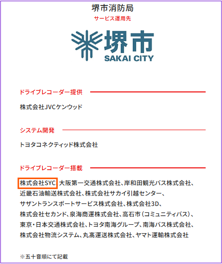 弊社は今年度より『交通事故死傷者ゼロ』に目指し、トヨタ自動車株式会社が堺市消防局に提供するサービス、「DRIVE RECORDER119」に協力させていただいております。