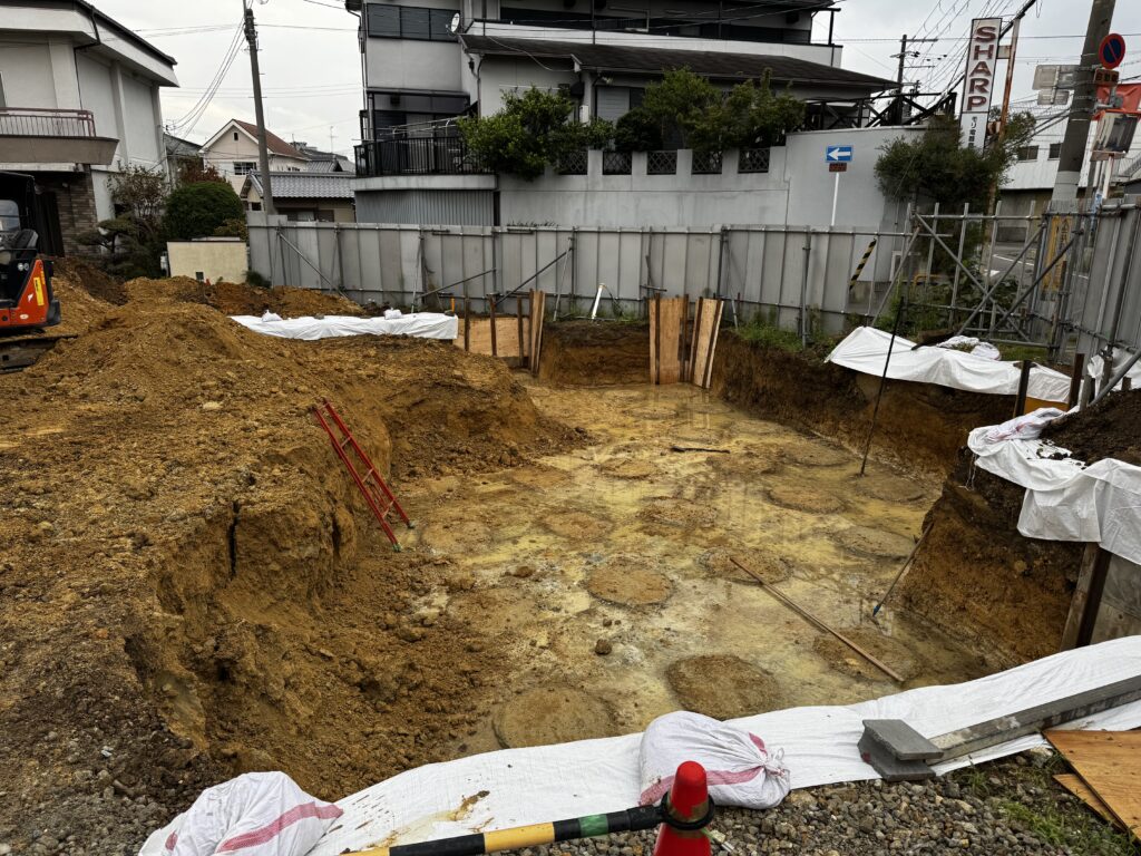 まずは建物基礎をしっかりと作るため、建築部に掘り、基礎打ちの準備。